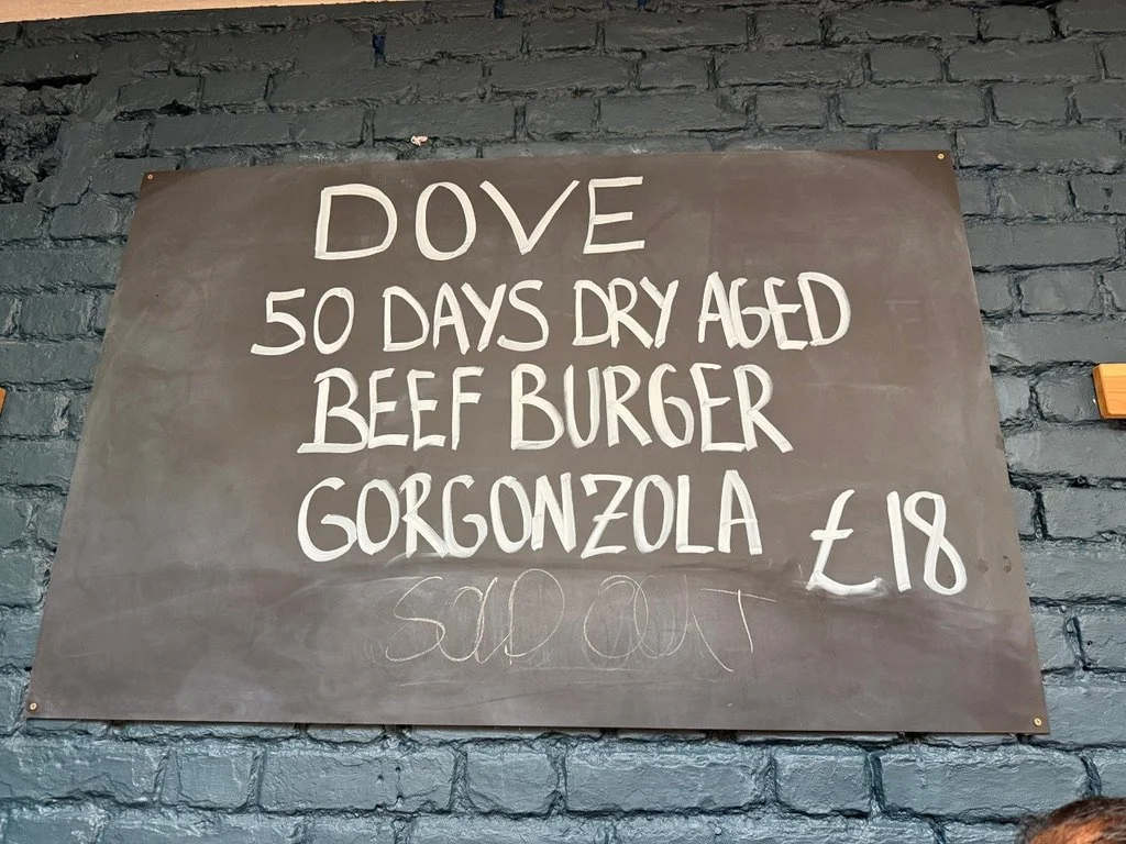 In Notting Hill, there is a restaurant called Dove. This restaurant makes 20 burgers a day, 10 for lunch service and 10 for dinner service. I had to get one of those burgers. Since I went with my cousin and our two friends, we got 2. After that, we went to a pub near by for some pints.